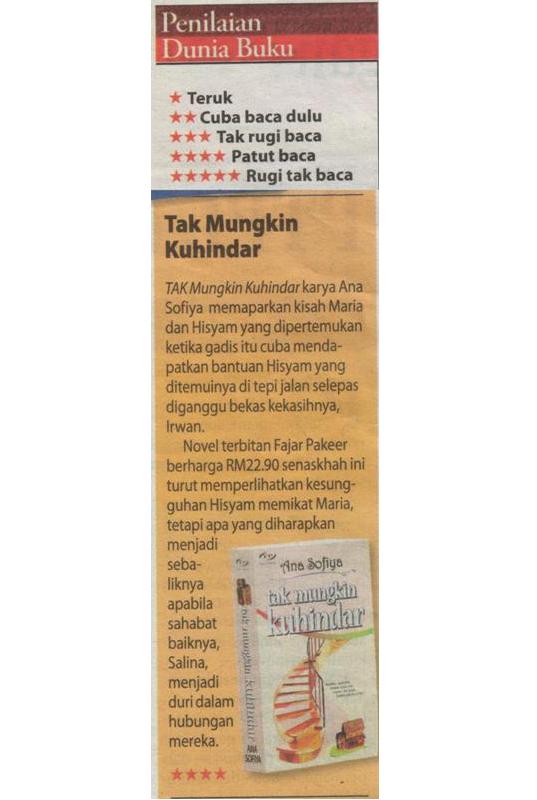 Tanpa suara, Salwa memecut keluar dari kawasan kilang. Hatinya belas melihat titisan air mata Maria. "Tak sangka kau dengan Hisyam berpisah kerana Irwan, Lia," keluhnya.